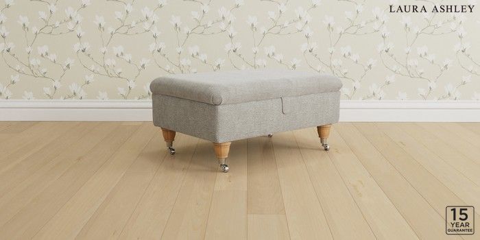6.12.1 Buy Kingston by Laura Ashley Storage Footstool Edwin Chenille Silver Grey Low Chrome Castor - Light Oak from the Next UK online shop Click here to use our accessible website