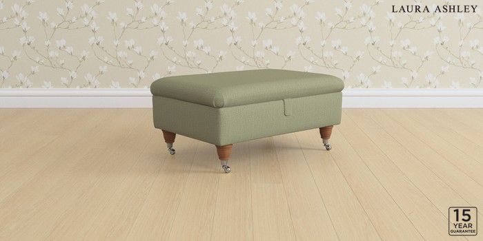 6.12.1 Buy Kingston by Laura Ashley Storage Footstool Edwin Herringbone Hedgerow Green Low Chrome Castor - Teak from the Next UK online shop Click here to use our accessible website