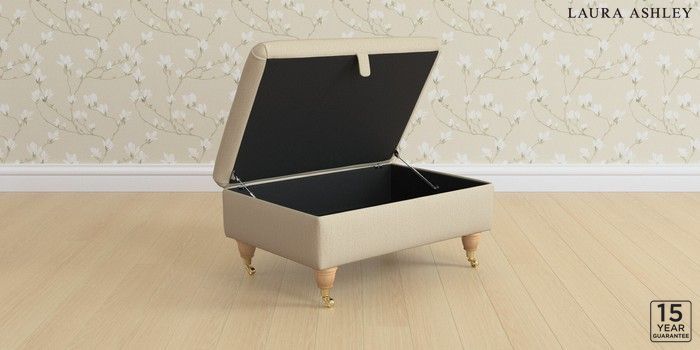 7.3.1 Buy Kingston by Laura Ashley Storage Footstool Edwin Herringbone Natural Low Brass Castor - Light Oak from the Next UK online shop Click here to use our accessible website