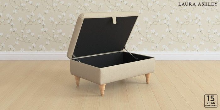 7.2.10 Buy Kingston by Laura Ashley Storage Footstool Edwin Herringbone Natural Low Turned - Light Oak from the Next UK online shop Click here to use our accessible website
