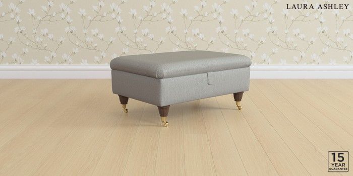 6.12.13 Buy Kingston by Laura Ashley Storage Footstool Edwin Herringbone Pale Steel Grey Low Brass Castor - Chestnut from the Next UK online shop Click here to use our accessible website