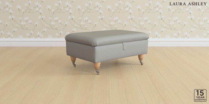 6.12.13 Buy Kingston by Laura Ashley Storage Footstool Edwin Herringbone Pale Steel Grey Low Chrome Castor - Light Oak from the Next UK online shop Click here to use our accessible website