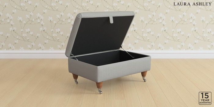 7.3.1 Buy Kingston by Laura Ashley Storage Footstool Edwin Herringbone Pale Steel Grey Low Chrome Castor - Teak from the Next UK online shop Click here to use our accessible website