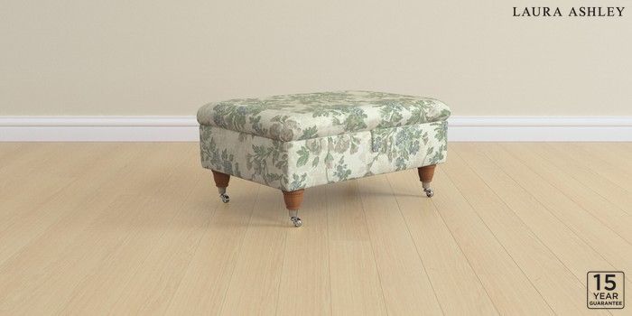 6.12.1 Buy Kingston by Laura Ashley Storage Footstool Ellerby Seaspray Blue Low Chrome Castor - Teak from the Next UK online shop Click here to use our accessible website