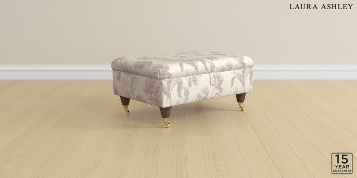 6.12.1 Buy Kingston by Laura Ashley Storage Footstool Gosford Weave Dusky Plum Purple Low Brass Castor - Chestnut from the Next UK online shop Click here to use our accessible website