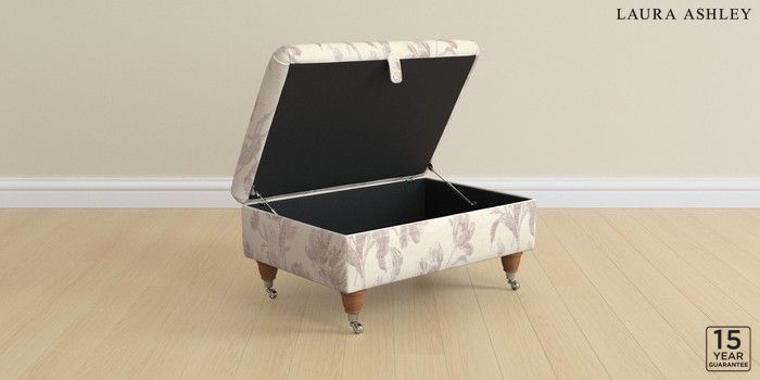 7.3.1 Buy Kingston by Laura Ashley Storage Footstool Gosford Weave Dusky Plum Purple Low Chrome Castor - Teak from the Next UK online shop Click here to use our accessible website