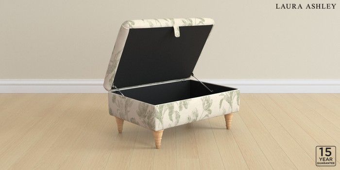 7.2.6 Buy Kingston by Laura Ashley Storage Footstool Gosford Weave Sage Green Low Turned - Light Oak from the Next UK online shop Click here to use our accessible website