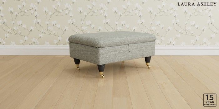 6.12.1 Buy Kingston by Laura Ashley Storage Footstool Harley Dove Grey Low Brass Castor - Black from the Next UK online shop Click here to use our accessible website