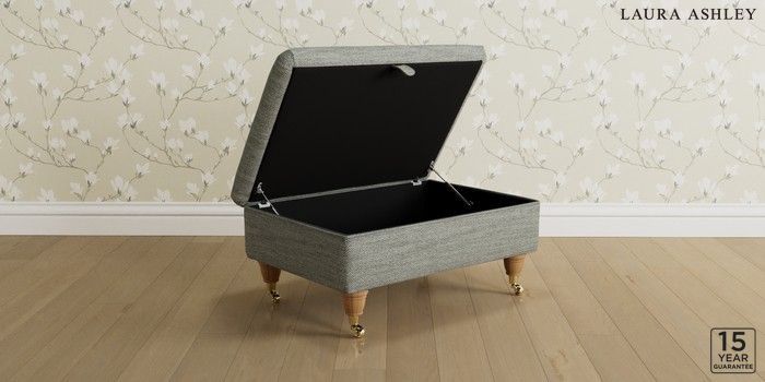 7.3.1 Buy Kingston by Laura Ashley Storage Footstool Harley Dove Grey Low Brass Castor - Light Oak from the Next UK online shop Click here to use our accessible website