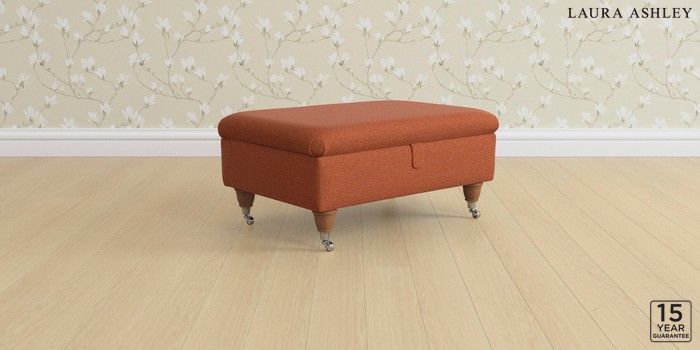 6.12.1 Buy Kingston by Laura Ashley Storage Footstool Harley Terracotta Orange Low Chrome Castor - Teak from the Next UK online shop Click here to use our accessible website