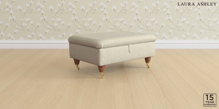 6.12.1 Buy Kingston by Laura Ashley Storage Footstool Kinsham Natural Low Brass Castor - Teak from the Next UK online shop Click here to use our accessible website