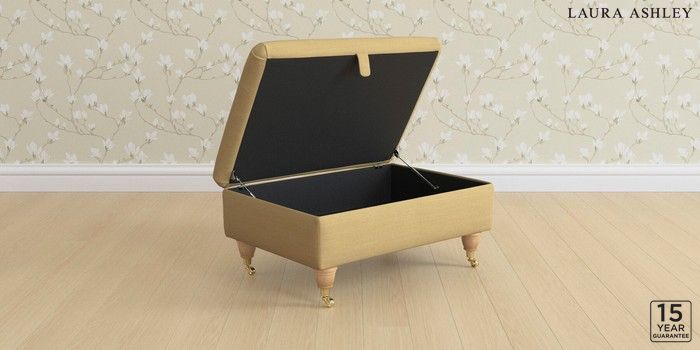 7.3.1 Buy Kingston by Laura Ashley Storage Footstool Kinsham Ochre Yellow Low Brass Castor - Light Oak from the Next UK online shop Click here to use our accessible website