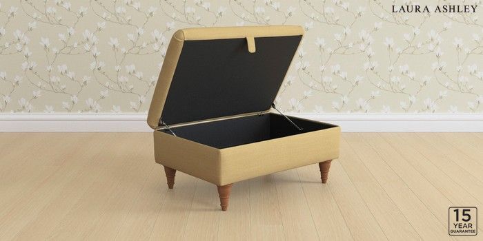 7.3.1 Buy Kingston by Laura Ashley Storage Footstool Kinsham Ochre Yellow Low Turned - Teak from the Next UK online shop Click here to use our accessible website