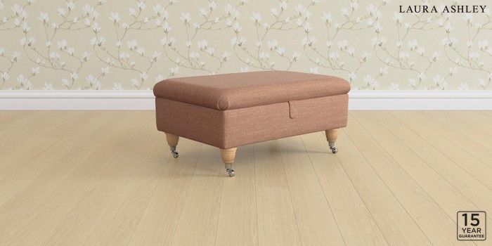 6.12.1 Buy Kingston by Laura Ashley Storage Footstool Kinsham Rust Orange Low Chrome Castor - Light Oak from the Next UK online shop Click here to use our accessible website