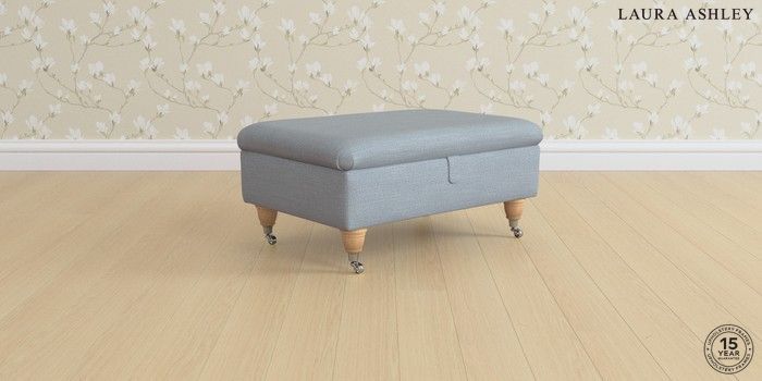 6.12.1 Buy Kingston by Laura Ashley Storage Footstool Kinsham Seaspray Blue Low Chrome Castor - Light Oak from the Next UK online shop Click here to use our accessible website