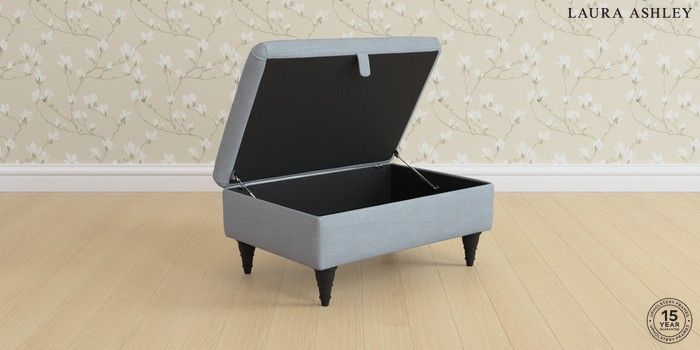 7.2.6 Buy Kingston by Laura Ashley Storage Footstool Kinsham Seaspray Blue Low Turned - Black from the Next UK online shop Click here to use our accessible website