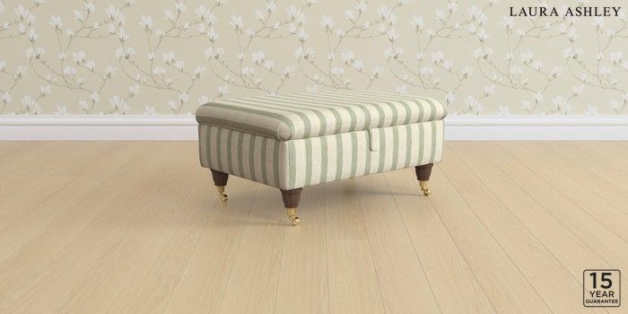 6.12.1 Buy Kingston by Laura Ashley Storage Footstool Kinsham Stripe Hedgerow Green Low Brass Castor - Chestnut from the Next UK online shop Click here to use our accessible website
