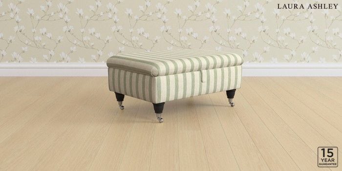 6.12.1 Buy Kingston by Laura Ashley Storage Footstool Kinsham Stripe Hedgerow Green Low Chrome Castor - Black from the Next UK online shop Click here to use our accessible website