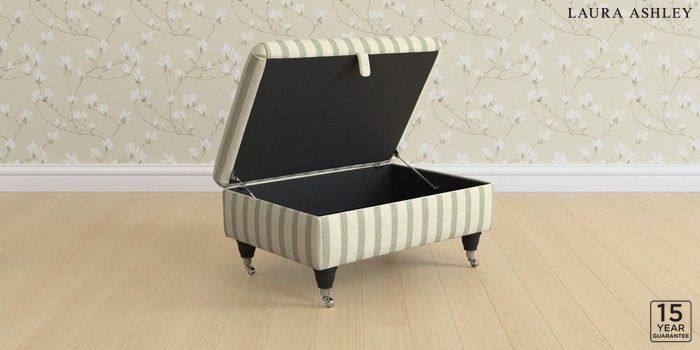 7.3.1 Buy Kingston by Laura Ashley Storage Footstool Kinsham Stripe Hedgerow Green Low Chrome Castor - Black from the Next UK online shop Click here to use our accessible website