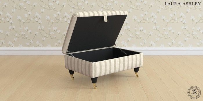 7.2.6 Buy Kingston by Laura Ashley Storage Footstool Kinsham Stripe Natural Low Brass Castor - Black from the Next UK online shop Click here to use our accessible website