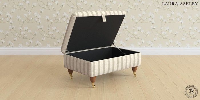7.2.6 Buy Kingston by Laura Ashley Storage Footstool Kinsham Stripe Natural Low Brass Castor - Teak from the Next UK online shop Click here to use our accessible website