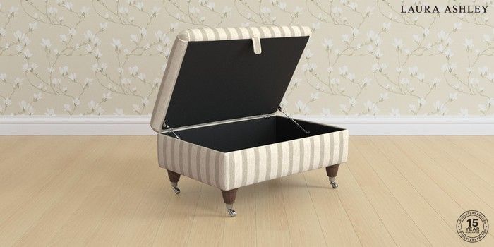 7.2.6 Buy Kingston by Laura Ashley Storage Footstool Kinsham Stripe Natural Low Chrome Castor - Chestnut from the Next UK online shop Click here to use our accessible website