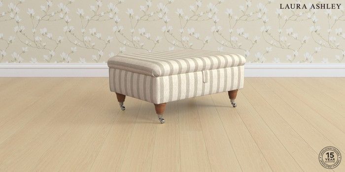 6.12.1 Buy Kingston by Laura Ashley Storage Footstool Kinsham Stripe Natural Low Chrome Castor - Teak from the Next UK online shop Click here to use our accessible website