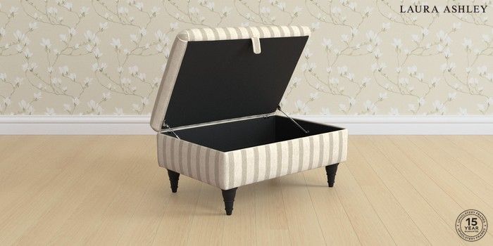 7.2.6 Buy Kingston by Laura Ashley Storage Footstool Kinsham Stripe Natural Low Turned - Black from the Next UK online shop Click here to use our accessible website