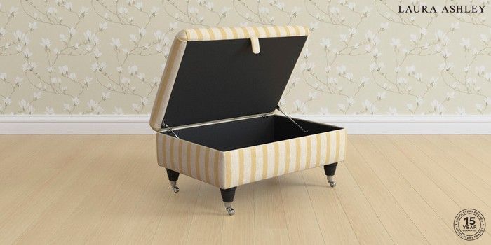 7.3.1 Buy Kingston by Laura Ashley Storage Footstool Kinsham Stripe Ochre Yellow Low Chrome Castor - Black from the Next UK online shop Click here to use our accessible website