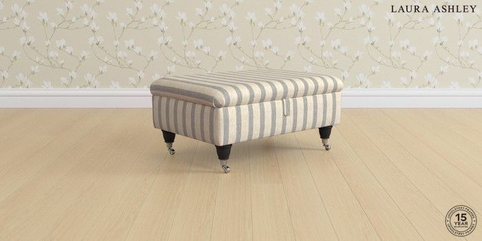 6.12.1 Buy Kingston by Laura Ashley Storage Footstool Kinsham Stripe Seaspray Blue Low Chrome Castor - Black from the Next UK online shop Click here to use our accessible website