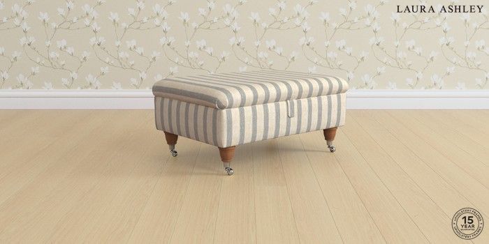 6.12.1 Buy Kingston by Laura Ashley Storage Footstool Kinsham Stripe Seaspray Blue Low Chrome Castor - Teak from the Next UK online shop Click here to use our accessible website