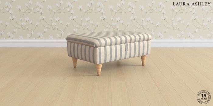 6.12.1 Buy Kingston by Laura Ashley Storage Footstool Kinsham Stripe Seaspray Blue Low Turned - Light Oak from the Next UK online shop Click here to use our accessible website