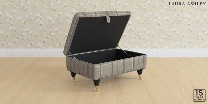 7.3.1 Buy Kingston by Laura Ashley Storage Footstool Longstowe Check French Grey Low Brass Castor - Black from the Next UK online shop Click here to use our accessible website