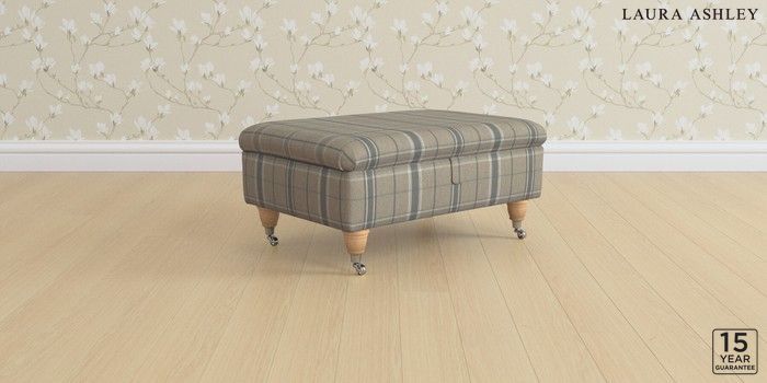 6.12.1 Buy Kingston by Laura Ashley Storage Footstool Longstowe Check French Grey Low Chrome Castor - Light Oak from the Next UK online shop Click here to use our accessible website