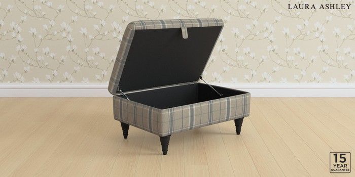 7.3.1 Buy Kingston by Laura Ashley Storage Footstool Longstowe Check French Grey Low Turned - Black from the Next UK online shop Click here to use our accessible website