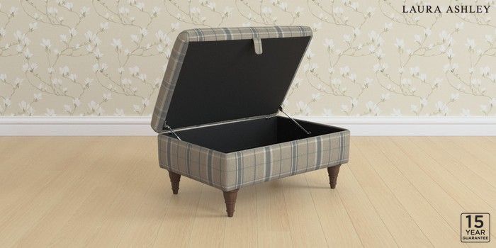 7.2.6 Buy Kingston by Laura Ashley Storage Footstool Longstowe Check French Grey Low Turned - Chestnut from the Next UK online shop Click here to use our accessible website