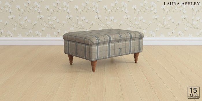 6.12.1 Buy Kingston by Laura Ashley Storage Footstool Longstowe Check French Grey Low Turned - Teak from the Next UK online shop Click here to use our accessible website