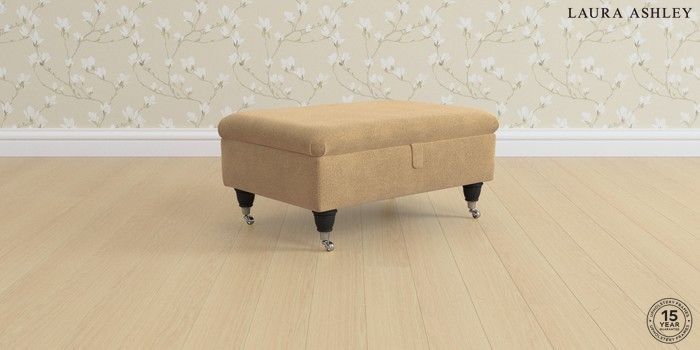 6.12.1 Buy Kingston by Laura Ashley Storage Footstool Lundar Chenille Caramel Natural Low Chrome Castor - Black from the Next UK online shop Click here to use our accessible website