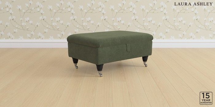6.12.1 Buy Kingston by Laura Ashley Storage Footstool Lundar Chenille Ivy Green Low Chrome Castor - Black from the Next UK online shop Click here to use our accessible website