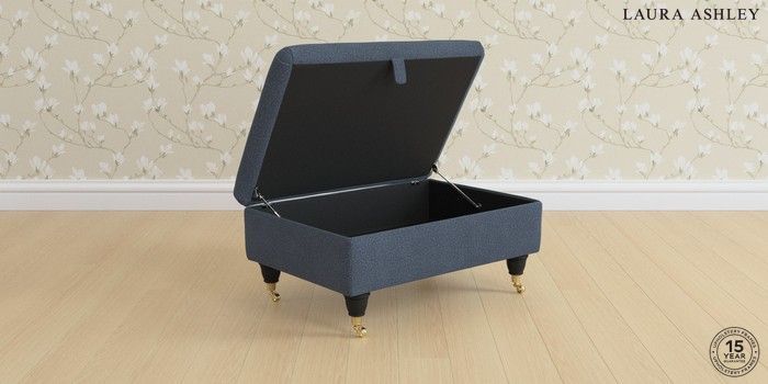 7.2.6 Buy Kingston by Laura Ashley Storage Footstool Lundar Chenille Navy Blue Low Brass Castor - Black from the Next UK online shop Click here to use our accessible website