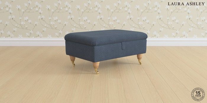 6.12.1 Buy Kingston by Laura Ashley Storage Footstool Lundar Chenille Navy Blue Low Brass Castor - Light Oak from the Next UK online shop Click here to use our accessible website