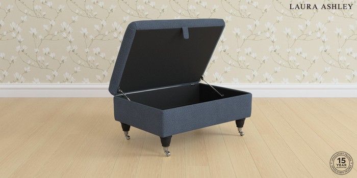 7.2.6 Buy Kingston by Laura Ashley Storage Footstool Lundar Chenille Navy Blue Low Chrome Castor - Black from the Next UK online shop Click here to use our accessible website