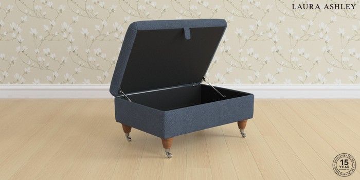 7.2.6 Buy Kingston by Laura Ashley Storage Footstool Lundar Chenille Navy Blue Low Chrome Castor - Teak from the Next UK online shop Click here to use our accessible website