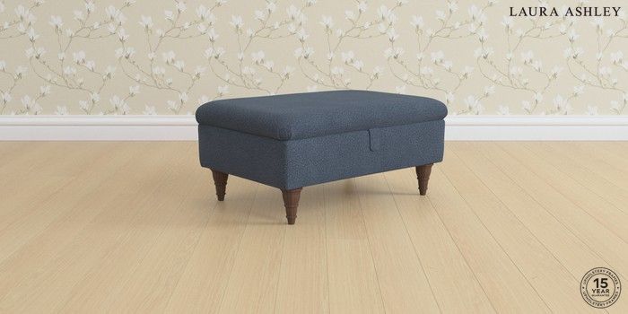 6.12.1 Buy Kingston by Laura Ashley Storage Footstool Lundar Chenille Navy Blue Low Turned - Chestnut from the Next UK online shop Click here to use our accessible website