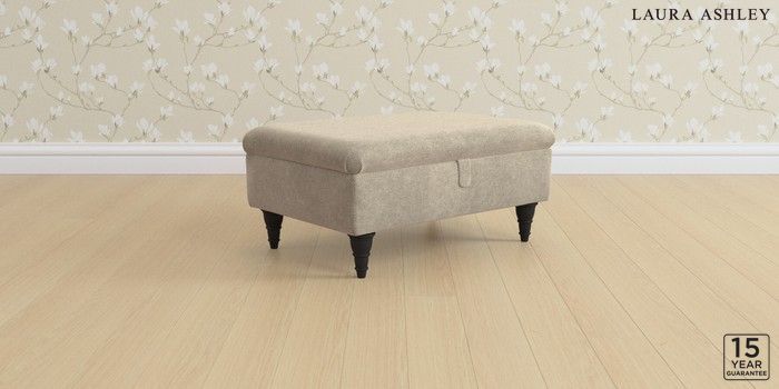 6.12.1 Buy Kingston by Laura Ashley Storage Footstool Lundar Chenille Truffle Natural Low Turned - Black from the Next UK online shop Click here to use our accessible website