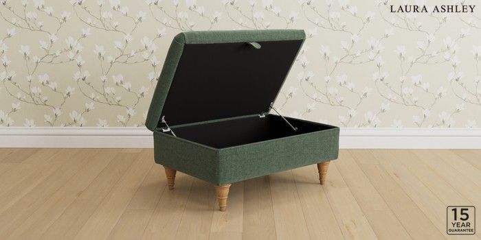 7.3.1 Buy Kingston by Laura Ashley Storage Footstool Nantmor Fern Green Low Turned - Light Oak from the Next UK online shop Click here to use our accessible website