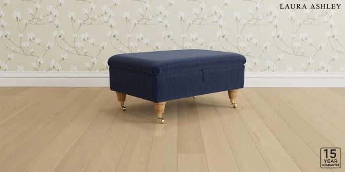 6.12.1 Buy Kingston by Laura Ashley Storage Footstool Nantmor Midnight Navy Low Brass Castor - Light Oak from the Next UK online shop Click here to use our accessible website