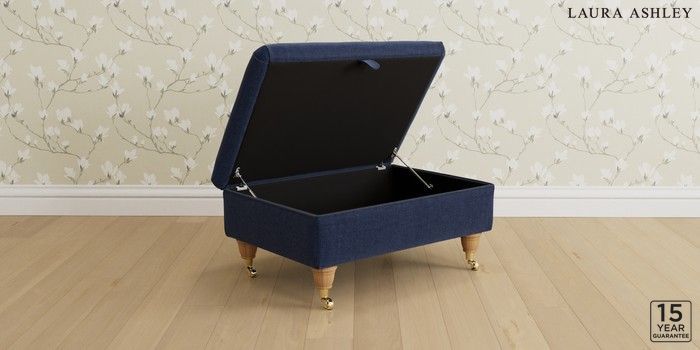 7.3.1 Buy Kingston by Laura Ashley Storage Footstool Nantmor Midnight Navy Low Brass Castor - Light Oak from the Next UK online shop Click here to use our accessible website