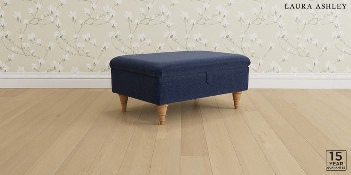 6.12.1 Buy Kingston by Laura Ashley Storage Footstool Nantmor Midnight Navy Low Turned - Light Oak from the Next UK online shop Click here to use our accessible website
