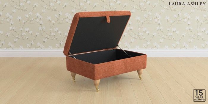 7.2.10 Buy Kingston by Laura Ashley Storage Footstool Nantmor Rust Orange Low Brass Castor - Light Oak from the Next UK online shop Click here to use our accessible website